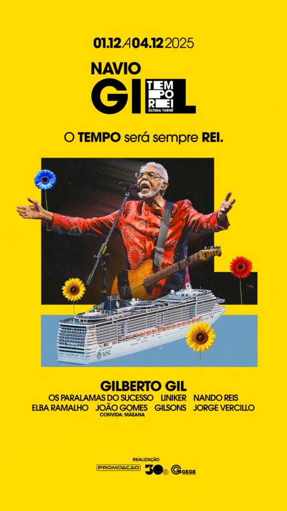 O Navio Gilberto Gil – Tempo Rei é um cruzeiro temático especial que marca a turnê de despedida de Gilberto Gil, um dos maiores nomes da cultura brasileira, sendo assim mais que uma despedida, um momento histórico em que agradecemos e consagramos Gil! Durante a viagem, o público viverá uma imersão musical e afetiva, revisitando […]
