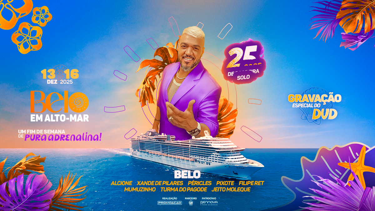 E essa edição será ainda mais especial: o cruzeiro celebra os 25 anos da carreira solo de Belo, com uma gravação exclusiva de seu novo DVD comemorativo durante a viagem, tornando-se assim uma oportunidade única de fazer parte da história do cantor, vivendo de perto momentos inesquecíveis dessa trajetória marcada por emoção e talento. Será um final de semana de pura adrenalina!