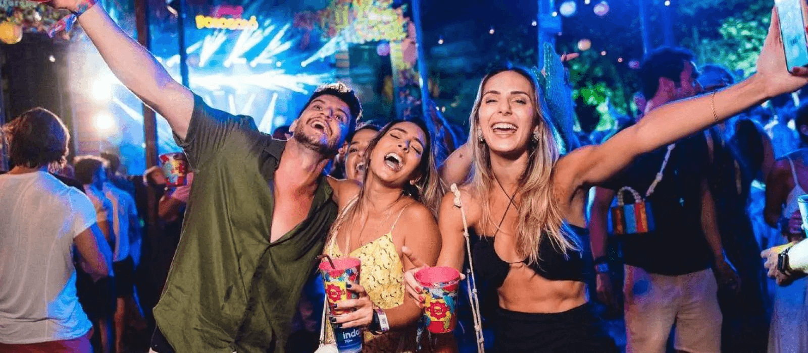 Logística: O evento oferece Transfers Exclusivos saindo de pontos estratégicos até o Meeting Point (local de troca de pulseiras e acesso às festas).